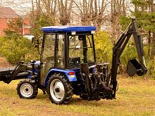 Компактный экскаватор на трактора и минитрактора позволит выполнять широчайший перечень земельных работ. Стоит обратить особое внимание на то, что для выполнения операции, управляющему оператору экскаватора потребуется пересесть в расположенное позади кабины специальное экскаваторное кресло.