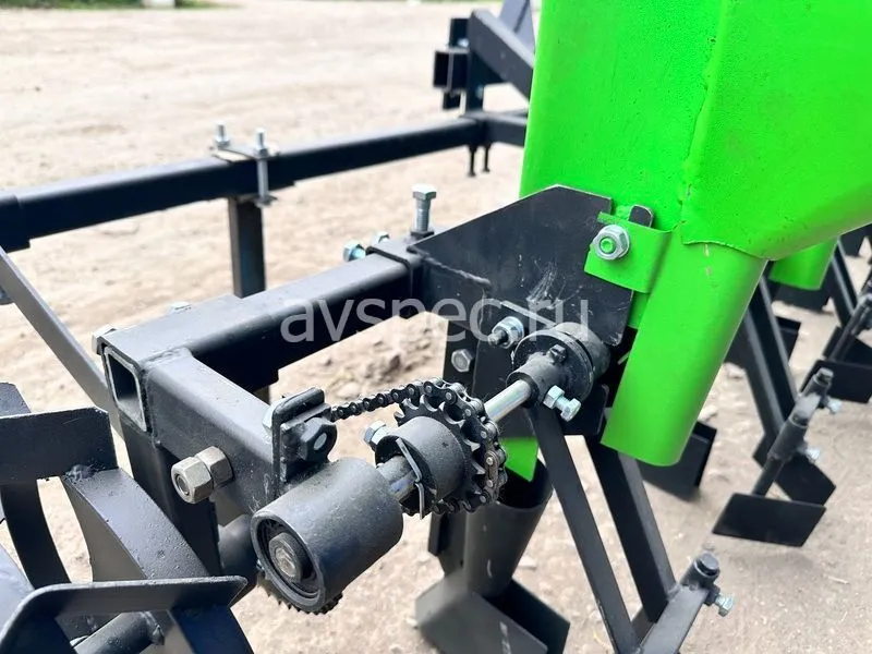 Для обеспечения стабильной работы на неровной почве применена двовальная система механизма дозирования с разделенным приводом. Шаг посадки в ряду: 110 мм, 125 мм, 140 мм, регулируется изменением передаточного числа на цепном редукторе. Для компенсации длины цепи использован натяжитель. Сошник и заделки регулируемые, глубина посадки – 60-80 мм. Ширина междурядий регулируется в пределах 200–330 мм. Ширина пути – 2220 мм.